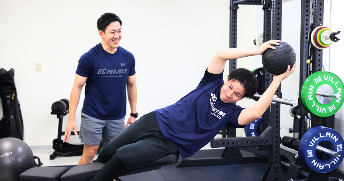 そのため、ただ筋肉をつけるだけでなく、「怪我をしないための身体の使い方姿勢改善」のコンディショニングも同時に行っています。